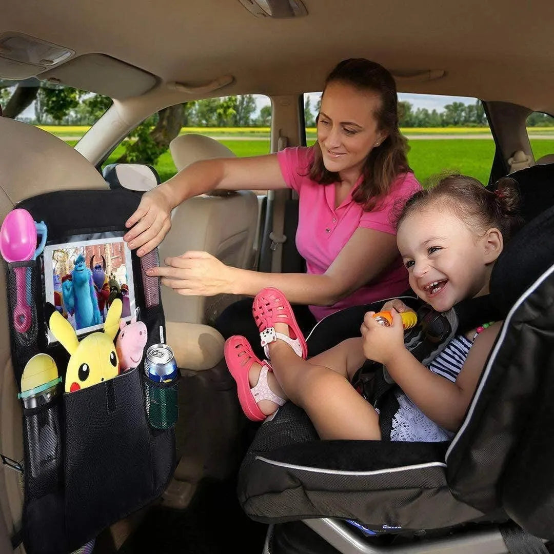 ✔ Viajes más cómodos → bolsillo transparente táctil para tablets (hasta 10”), ideal para entretener a los niños.